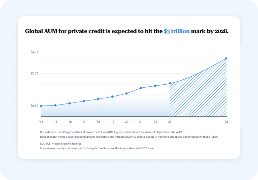 By filling that gap, private credit keeps money moving and businesses growing. Its steady climb is projected to hit three trillion dollars by 2028.