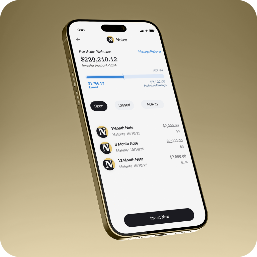 Start with 1-month or 3-month Notes, or maximize returns with our 12-Month Signature Note at 8.5%. Real collateral, real income.